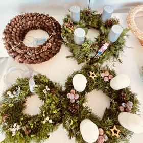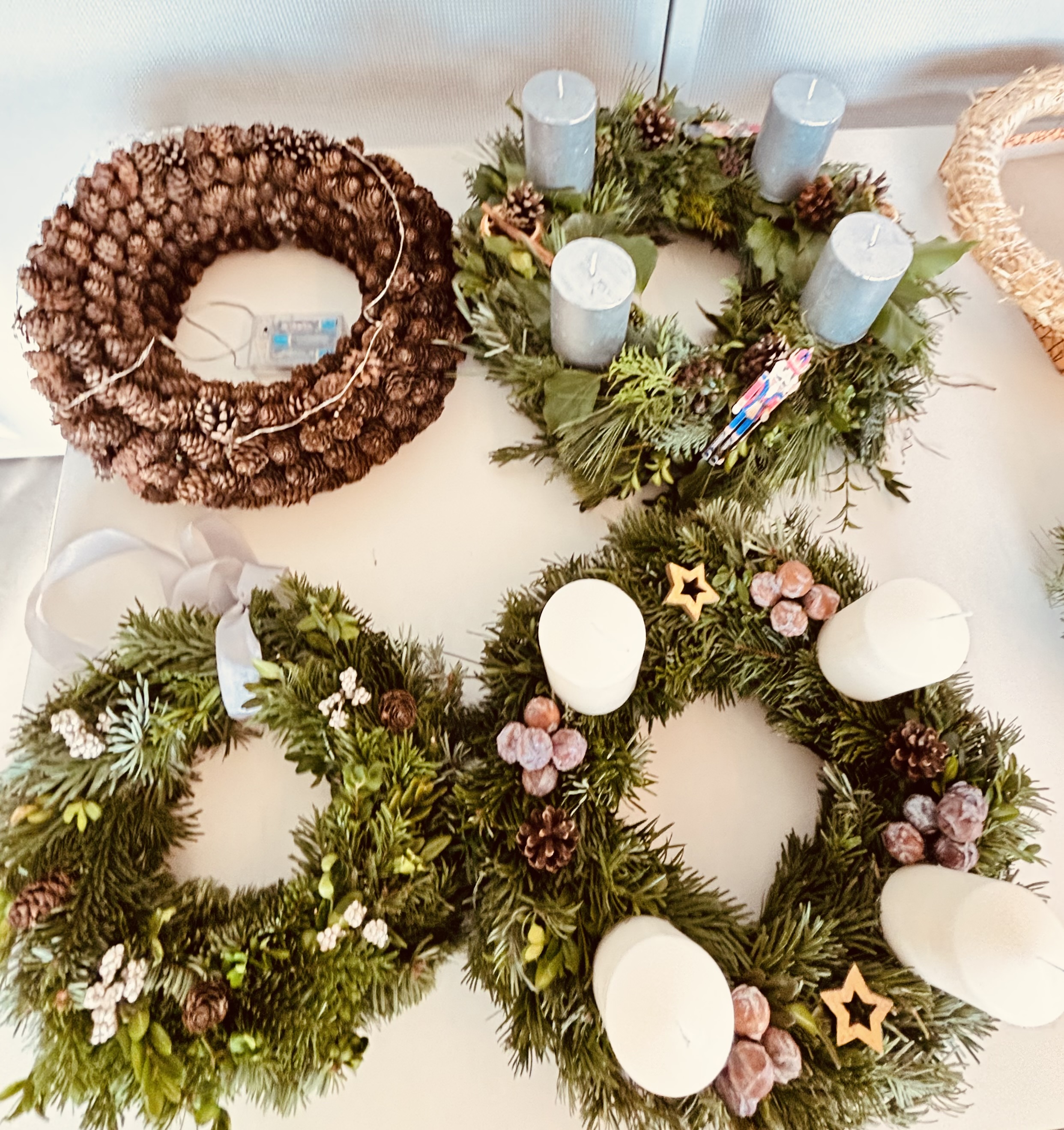 Am Ende des Vormittags konnte sich das Ergebnis sehen lassen. Jede Teilnehmerin konnte ihren ganz persönlichen Adventskranz mit nach Hause nehmen.