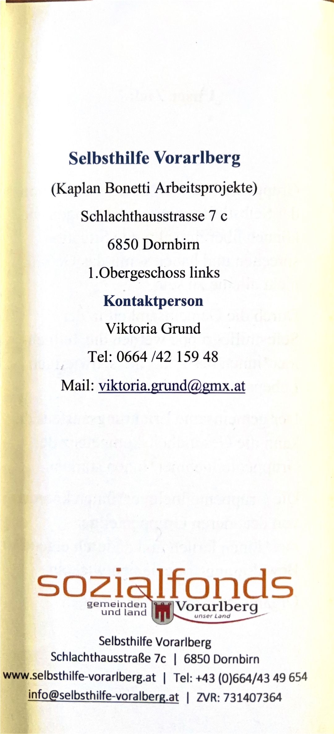 > Ort: Selbsthilfe Vorarlberg, Schlachthausstraße 7C, Dornbirn